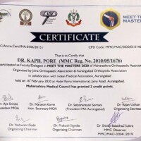 Dr. Kapil A. Pore is one of the excellent “Orthopedic trauma and joint replacement surgeon” working in Aurangabad since last 5 years. He is in the field of orthopedic since last 10 years. He is known as one of the Best Rheumatologist in Aurangabad. He has done his graduation (M.B.B.S) from Dr. PDMMC, Amravati with excellent academics then done his post-graduation Diploma in orthopedics from the prestigious institute and India’s first government joint replacement center “Jagjivanram railway hospital”, Mumbai.